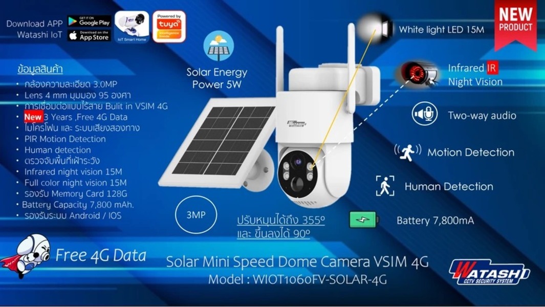 Watashi S49 Solar Power PTZ Camera กล้องวงจรปิดโซลาร์เซลล์