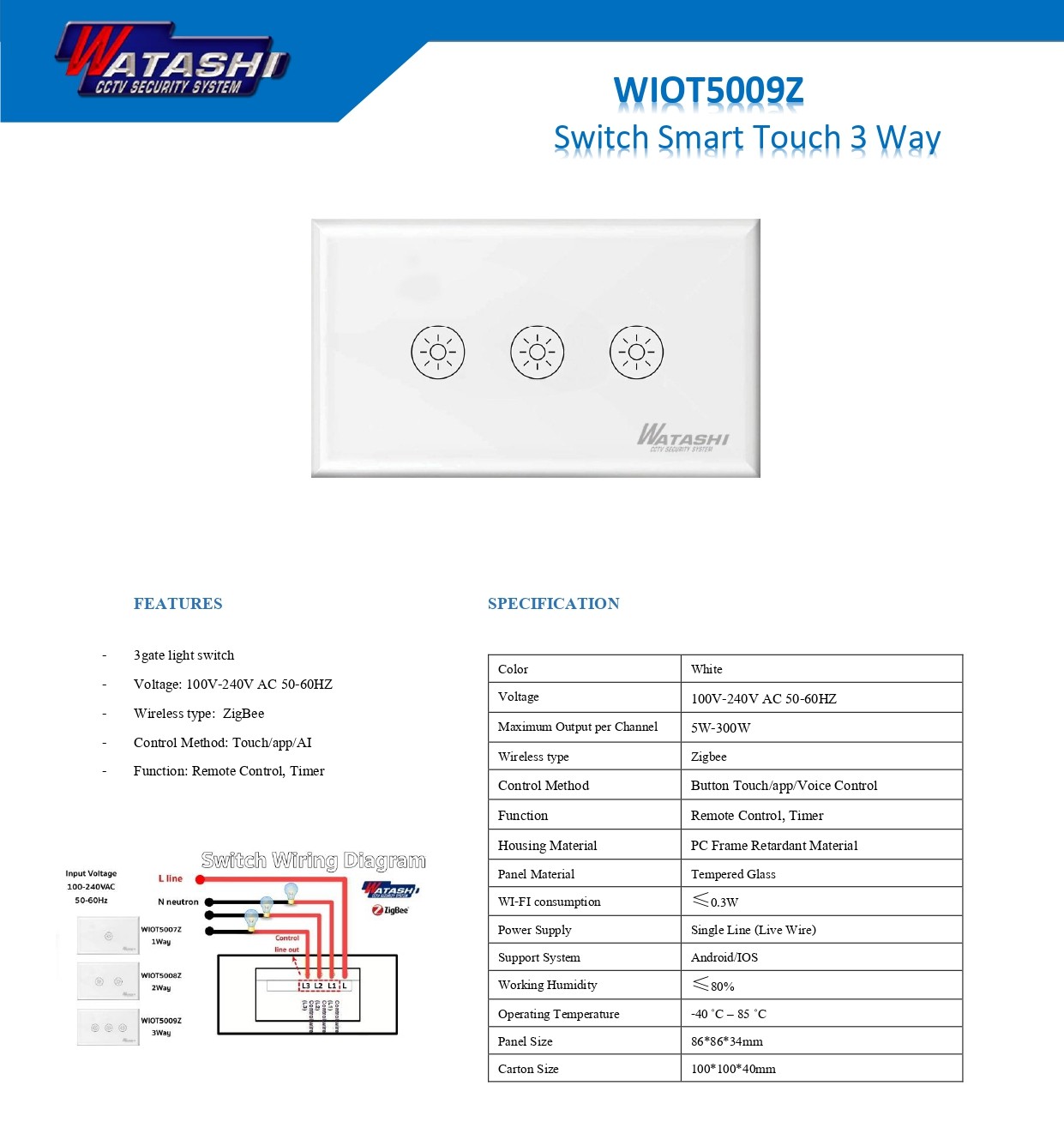 Watashi Zigbee WIOT5009ZS Switch Smart Touch สวิตช์ไฟอัจฉริยะ