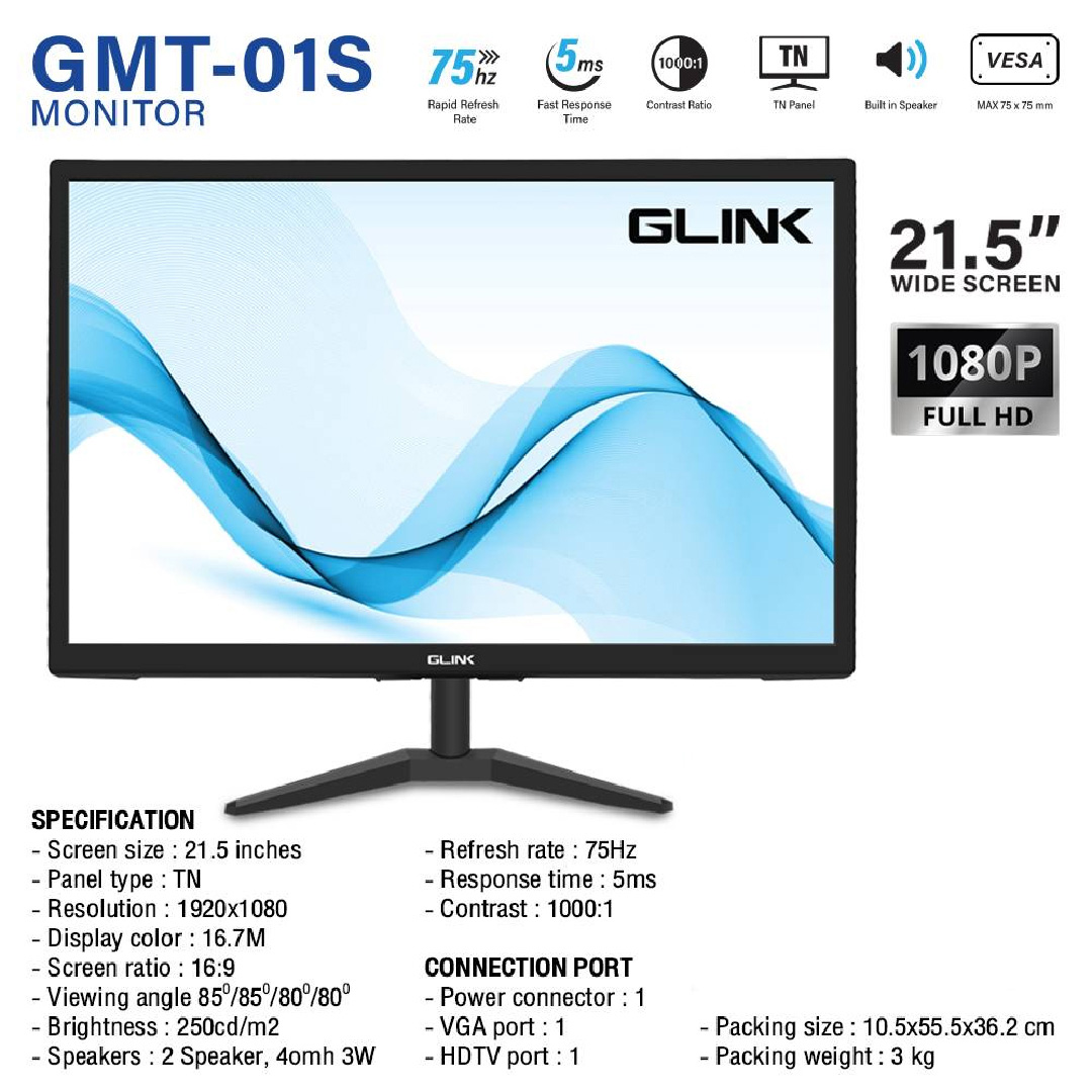 Glink Monitor 21.5" 16:9 TN 1080P HDIM VGA จอคอมพิวเตอร์