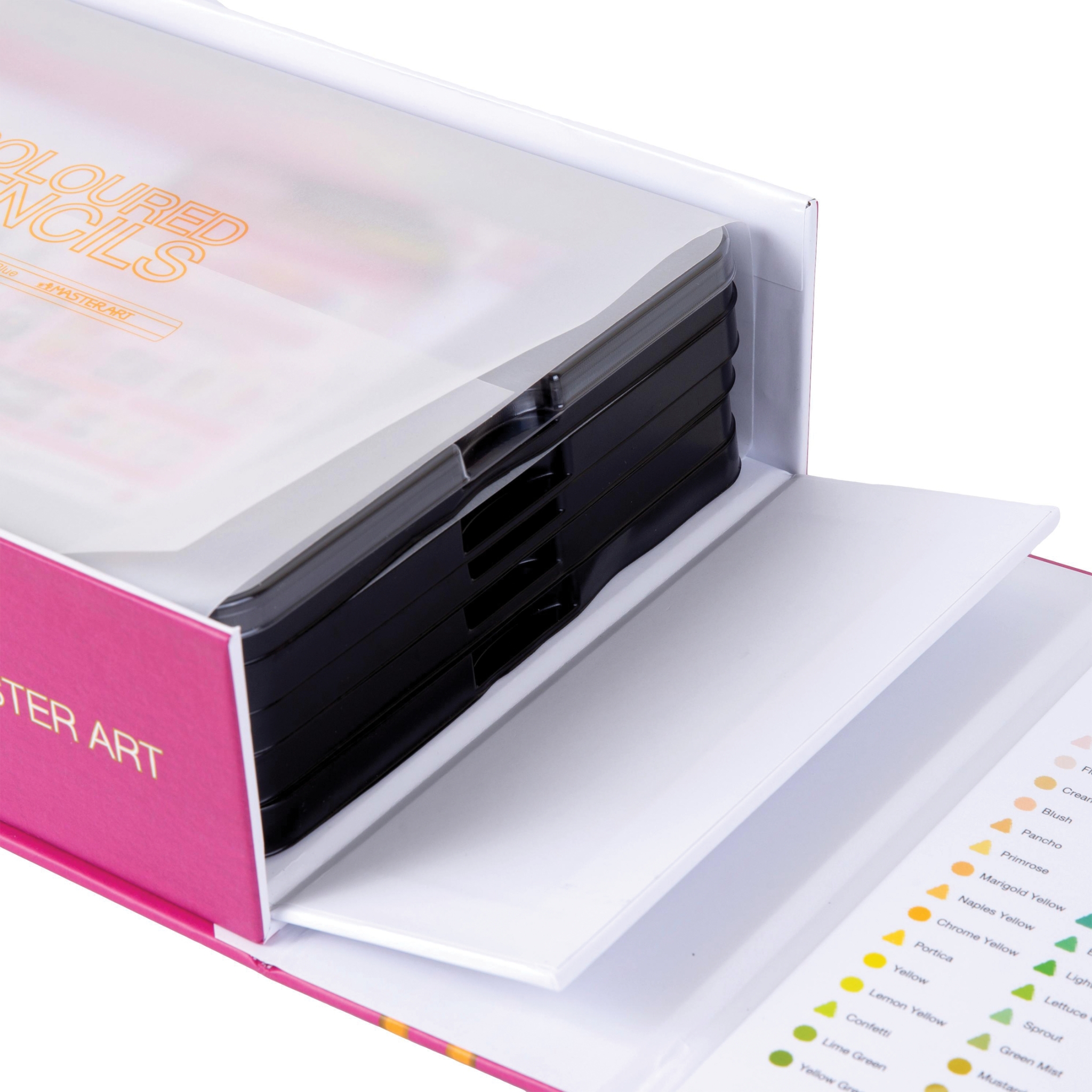 - - ด้านในแต่ละถาดมีทั้งหมด 5 ถาด มีแผ่นกระดาษไขระบุชื่อสีชัดเจน ช่วยให้จัดเก็บและเลือกใช้สีได้สะดวกยิ่งขึ้น พร้อมปกป้องสีในแต่ละถาด