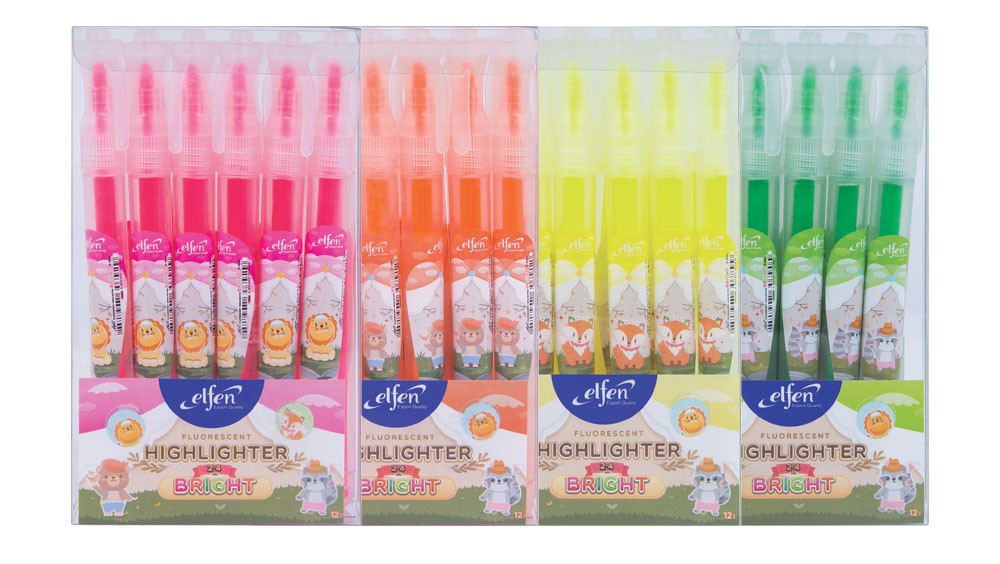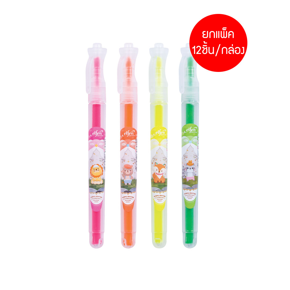 ยกแพ็ค 12 ชิ้น Elfen Bright Highlighter ปากกาเน้นข้อความ 2-4 mm.