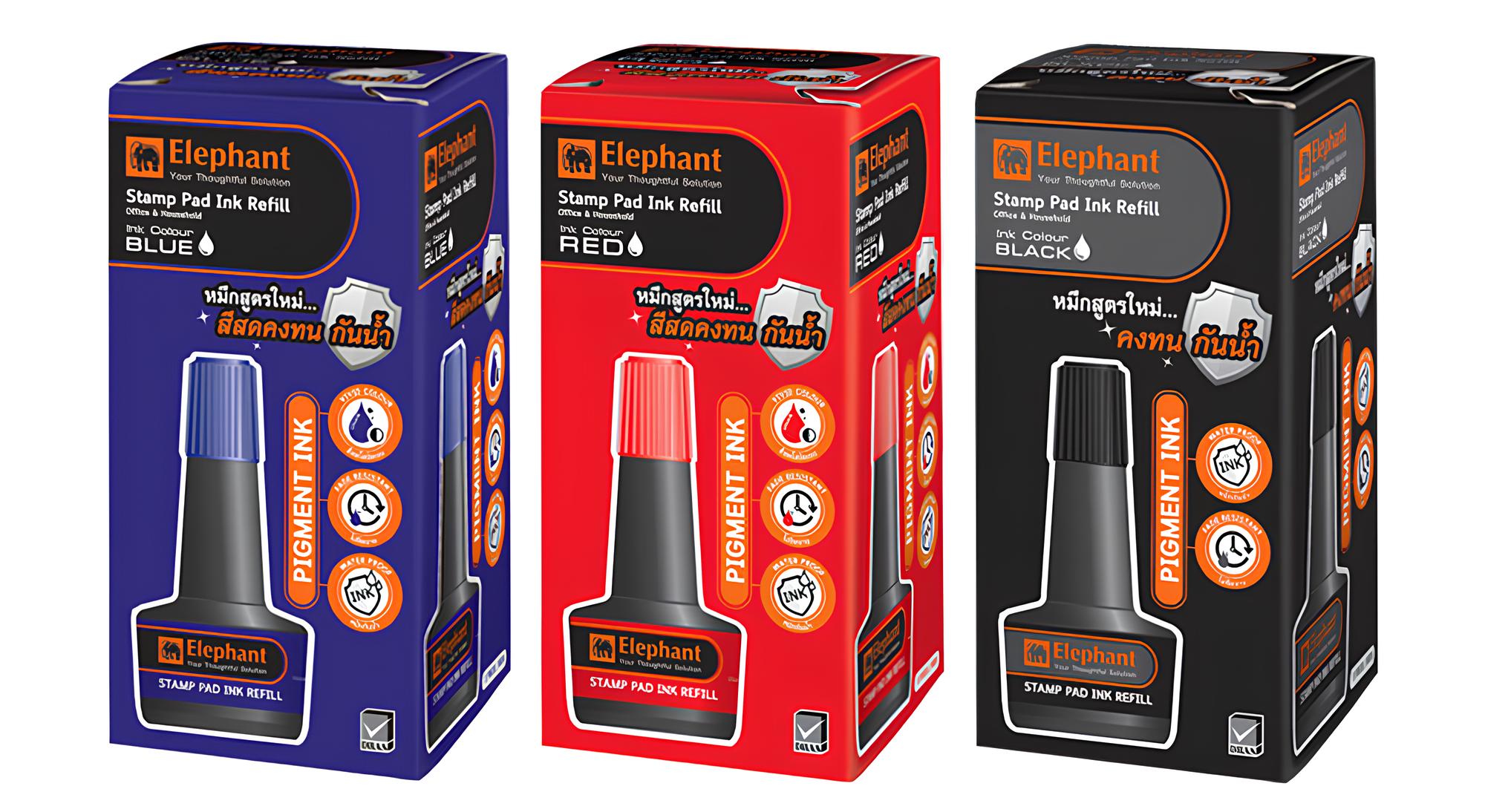 หมึกเติมแท่นประทับ ตราช้าง สีสดใส กันน้ำ คมชัด ใช้ได้ยาวนาน