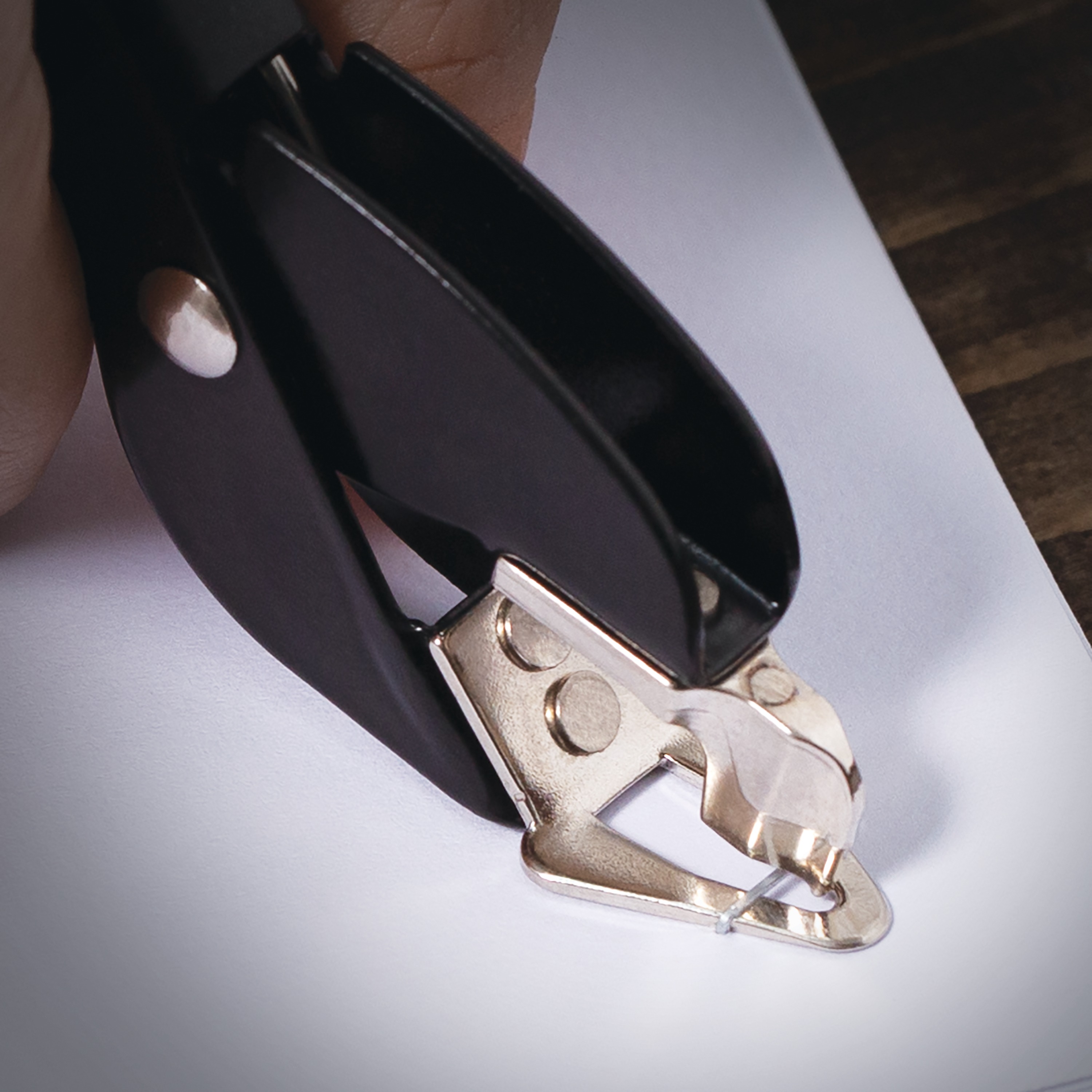 - - ปากครีมโลหะออกแบบพิเศษ สอดเข้าใต้ลวดเย็บกระดาษได้