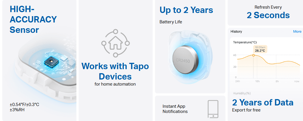 TP Link Tapo T310 Smart Temperature and Humidity Sensor เซ็นเซอร์วัดอุณหภูมิและความชื้นอัจฉริยะ