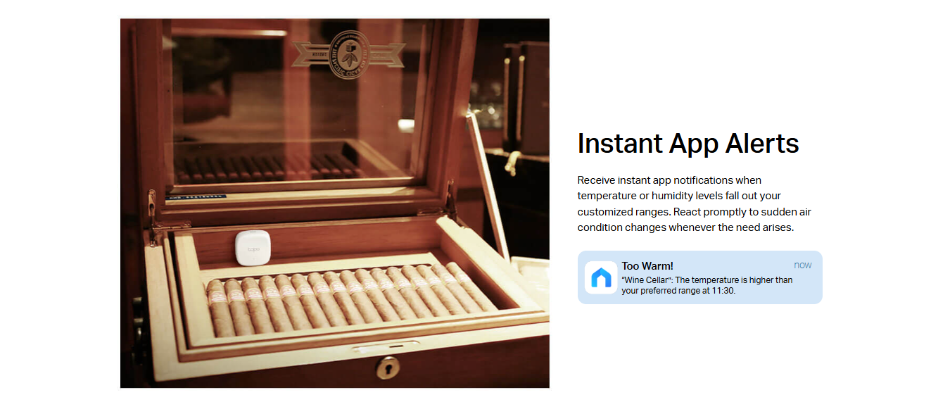 - - รับการแจ้งเตือนบนมือถือทันทีเมื่ออุณหภูมิหรือความชื้นเกินขีดจำกัดที่คุณตั้งไว้