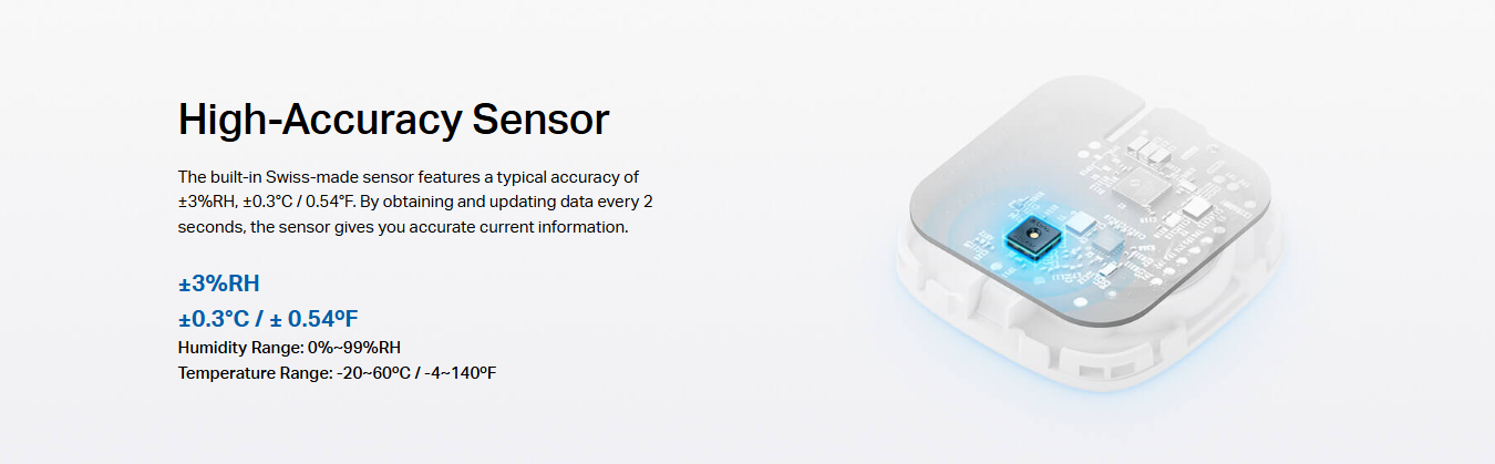 - - ใช้เซ็นเซอร์ Swiss-made ที่วัดอุณหภูมิ (±0.3°C) และความชื้น (±3% RH) ได้แม่นยำ และอัปเดตข้อมูลทุก 2 วินาที