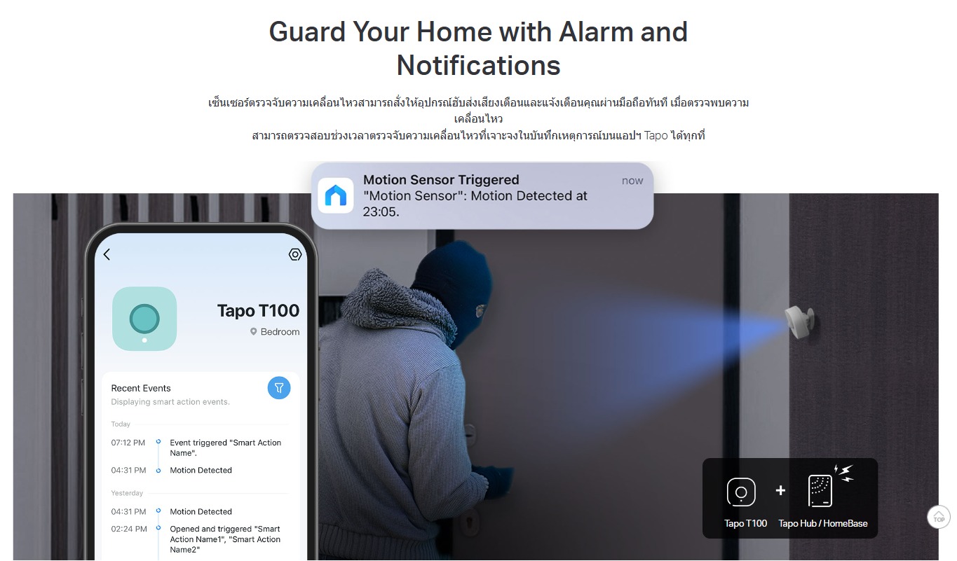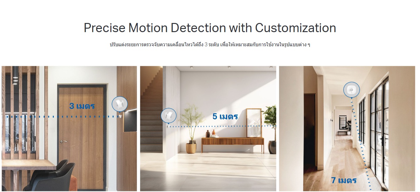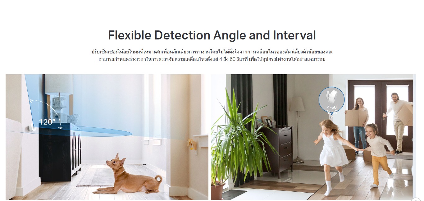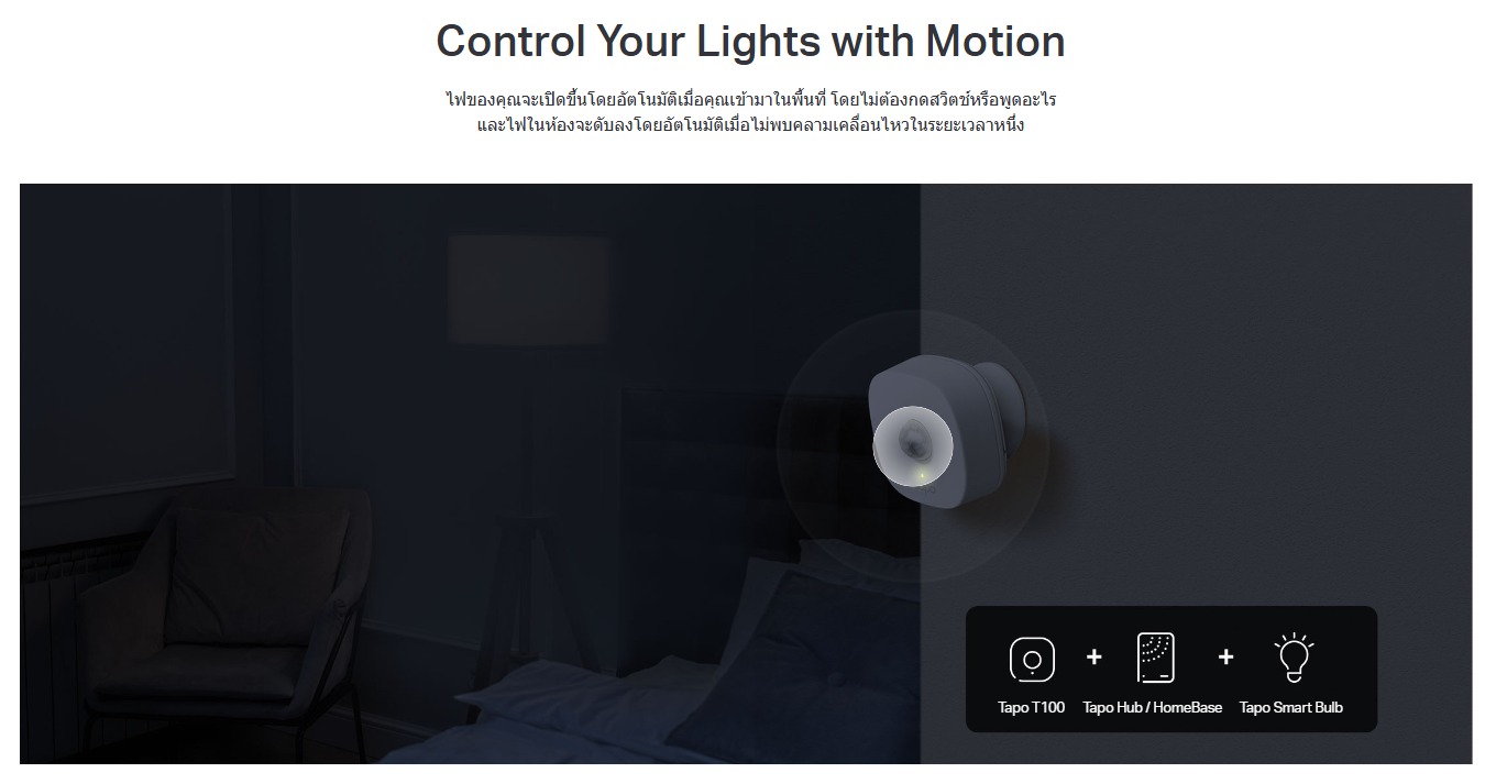 - - Works with Tapo Devices สั่งการอุปกรณ์อัจฉริยะ Tapo อื่น ๆ ให้ทำงานเมื่อตรวจพบความเคลื่อนไหว