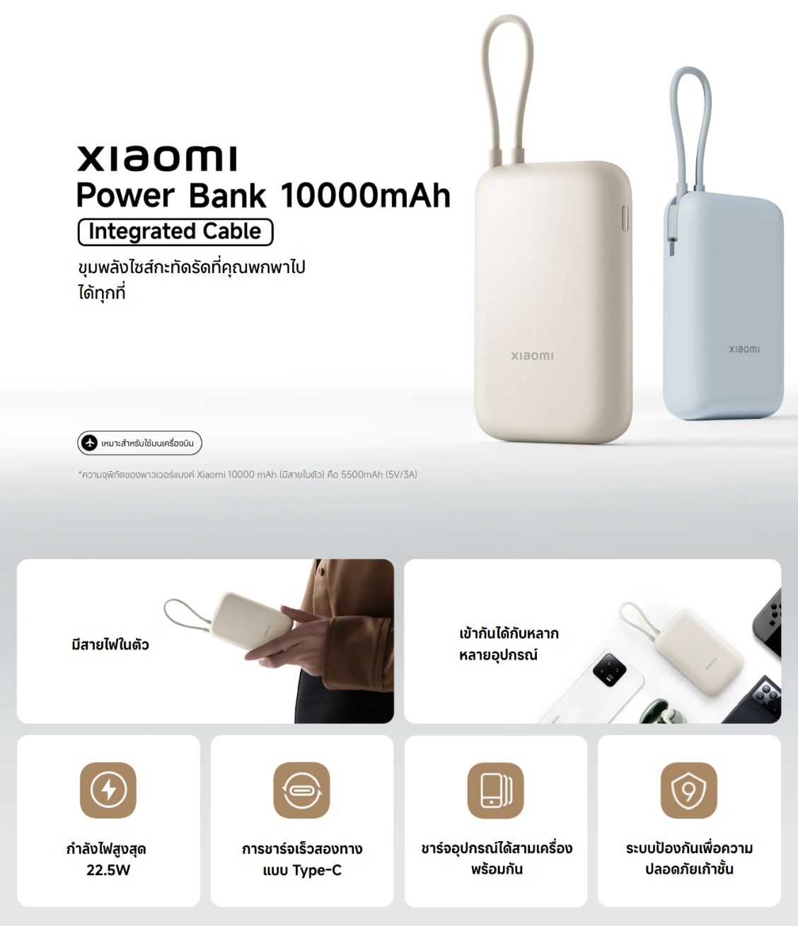 - - Xiaomi Power Bank 10000mAh (มีสายในตัว) x1