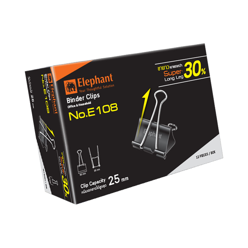 - - Elephant E108 คลิปดำหนีบกระดาษ 50x25 มม.