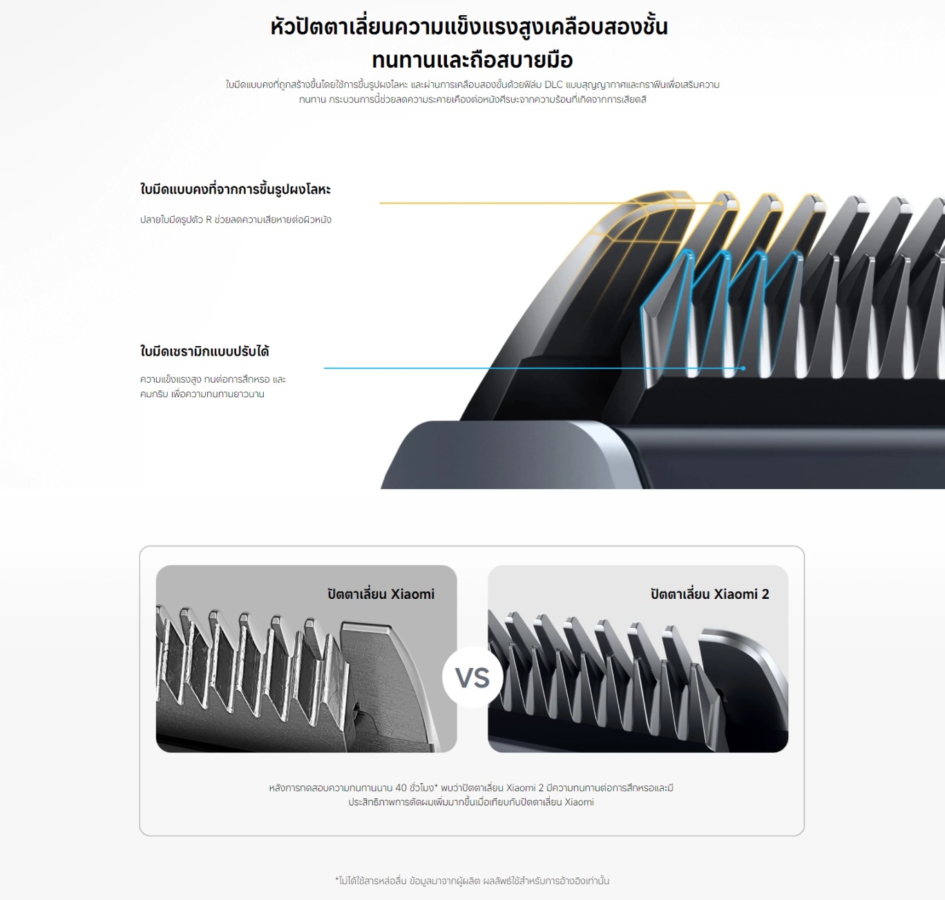 - - ใบมีดออกแบบมาเพื่อป้องกันการติดของเส้นผม