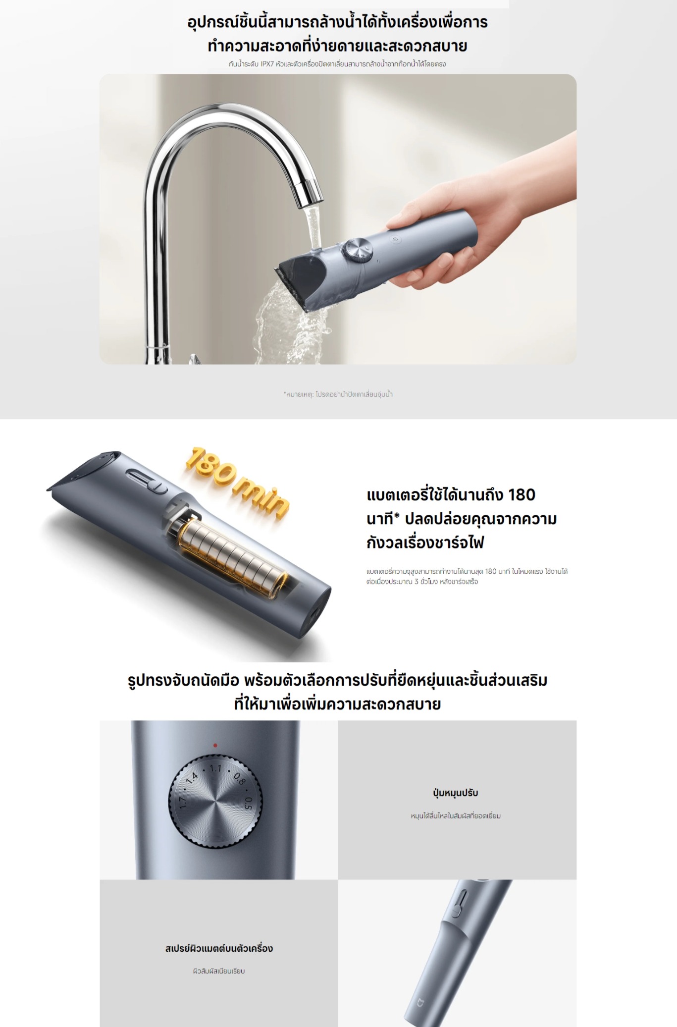 - - ล้างทำความสะอาดตัวเครื่องและหัวใบมีดได้โดยตรงใต้น้ำ สะดวกและถูกสุขอนามัย