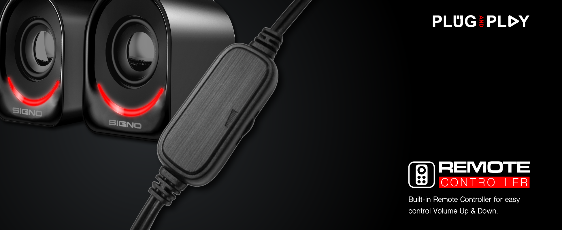 ลำโพง Signo ZONAR SP-616 ให้เสียงสเตอริโอคมชัด พร้อมเอฟเฟกต์ Extra Bass เพิ่มอรรถรสทั้งในการเล่นเกมและรับชมภาพยนตร์ มาพร้อมไฟ LED และรีโมตควบคุมเสียงในตัว ใช้งานง่ายผ่านสายแจ็ค 3.5 มม. ความยาว 1.3 เมตร รองรับพีซี, แล็ปท็อป, แมค, มือถือ และแท็บเล็ต พร้อมใช้งานทันทีด้วยระบบ Plug & Play