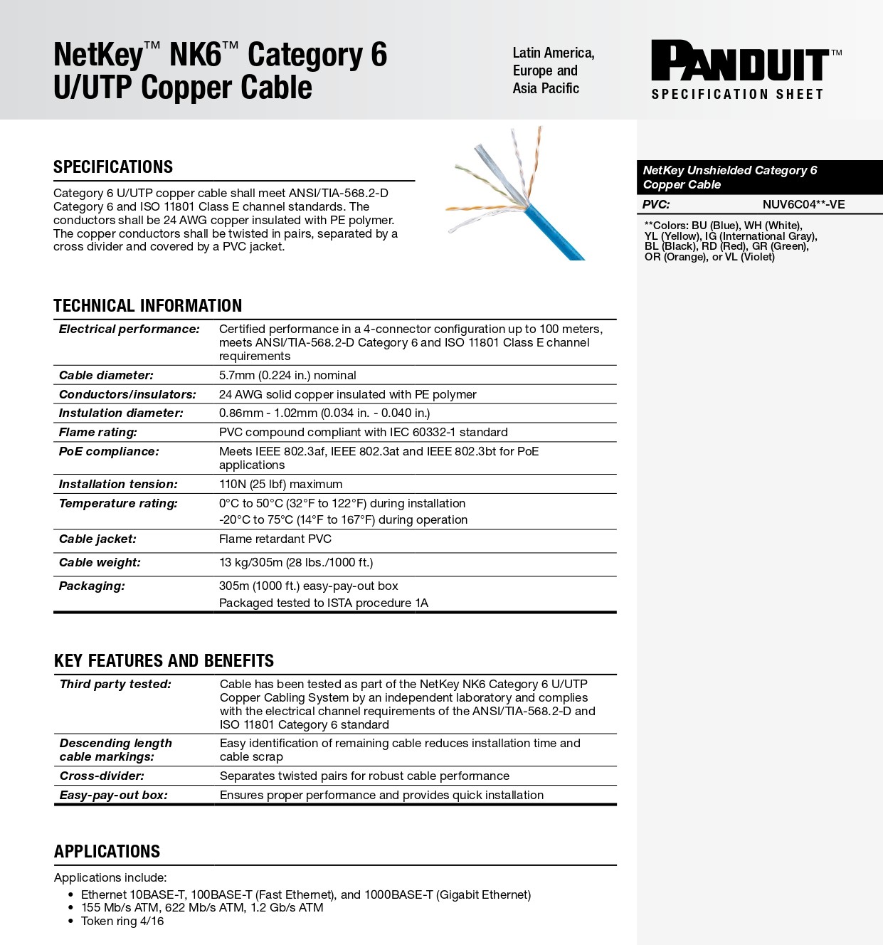 Panduit Netkey NUC6C04BU-FE CAT6 Indoor UTP Cable 305M/Box สายแลน