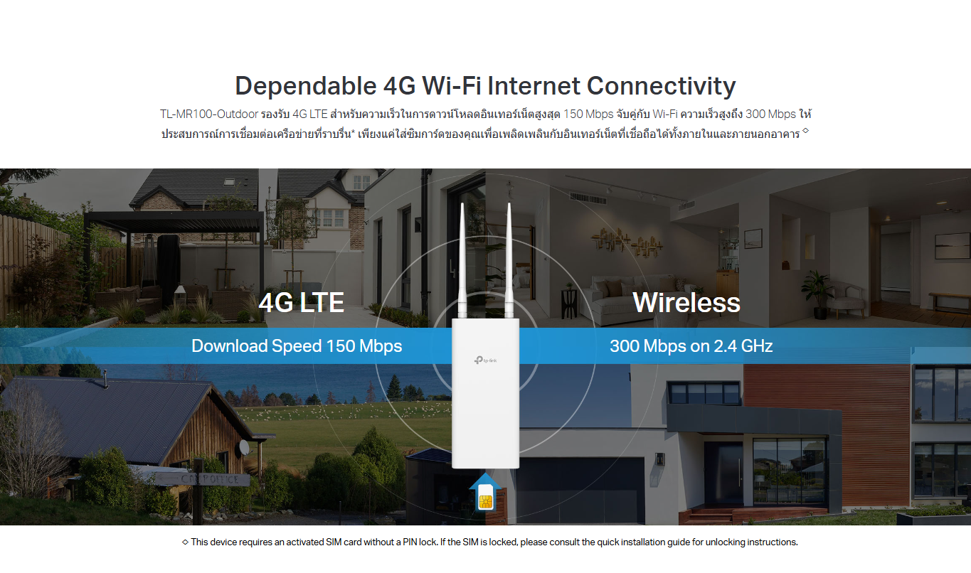 TP-Link TL-MR100 4G Outdoor 300 Mbps Wi-Fi Router เราเตอร์ใส่ซิม