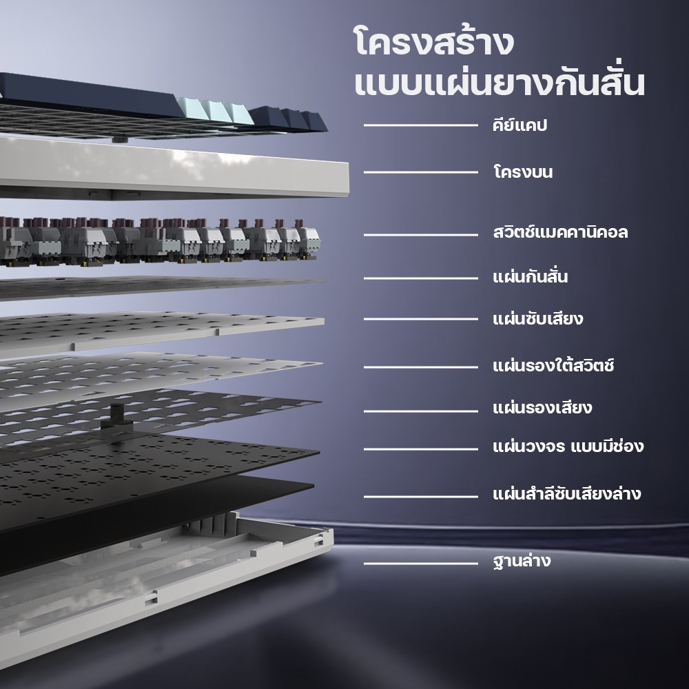 - - Gasket Mount + PE Foam สัมผัสนุ่ม เด้ง เงียบระดับพรีเมียม พร้อมชั้นโฟมซับเสียงครบชุด