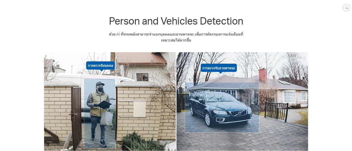 - - Smart AI Detection and Notification : ด้วย AI ที่ทรงพลังสามารถจำแนกบุคคลและยานพาหนะ เพื่อการแจ้งเตือนที่เหมาะสม