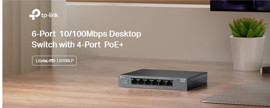 Tp-Link TL-LS106LP 6-Port 10/100Mb Desktop 4-Port PoE+ Switch 41W สวิตซ์ฮับ