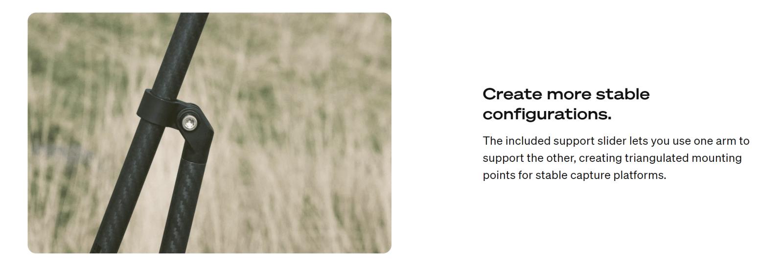 - - ตัวเลื่อนรองรับแบบสามเหลี่ยมที่ให้มา ช่วยให้คุณใช้แขนข้างหนึ่งรองรับอีกข้างหนึ่ง เพื่อสร้างแท่นถ่ายภาพที่มั่นคงเป็นพิเศษ