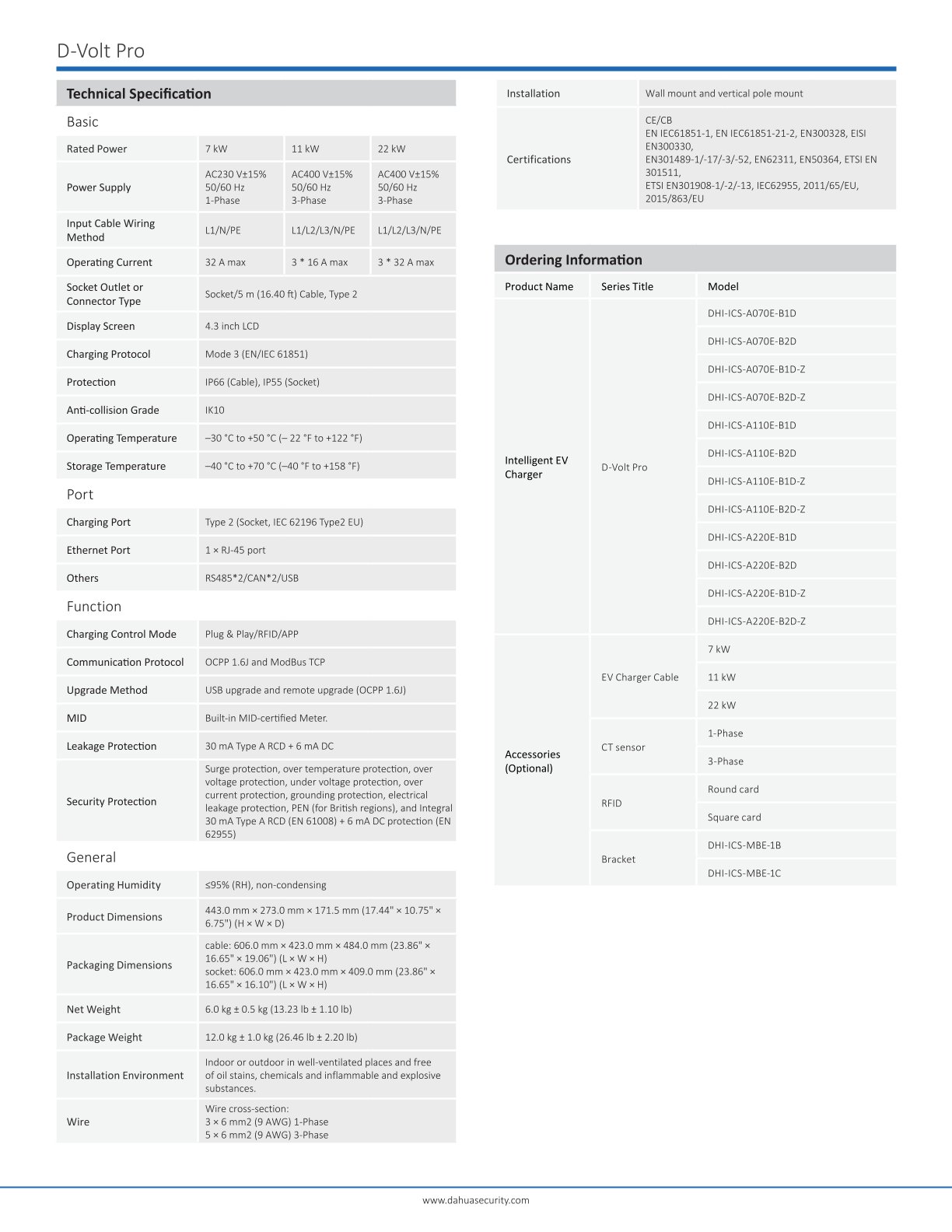 Dahua D Volt Pro Ev Charge WiFi เครื่องชาร์จรถยนต์ไฟฟ้าอัจฉริยะ