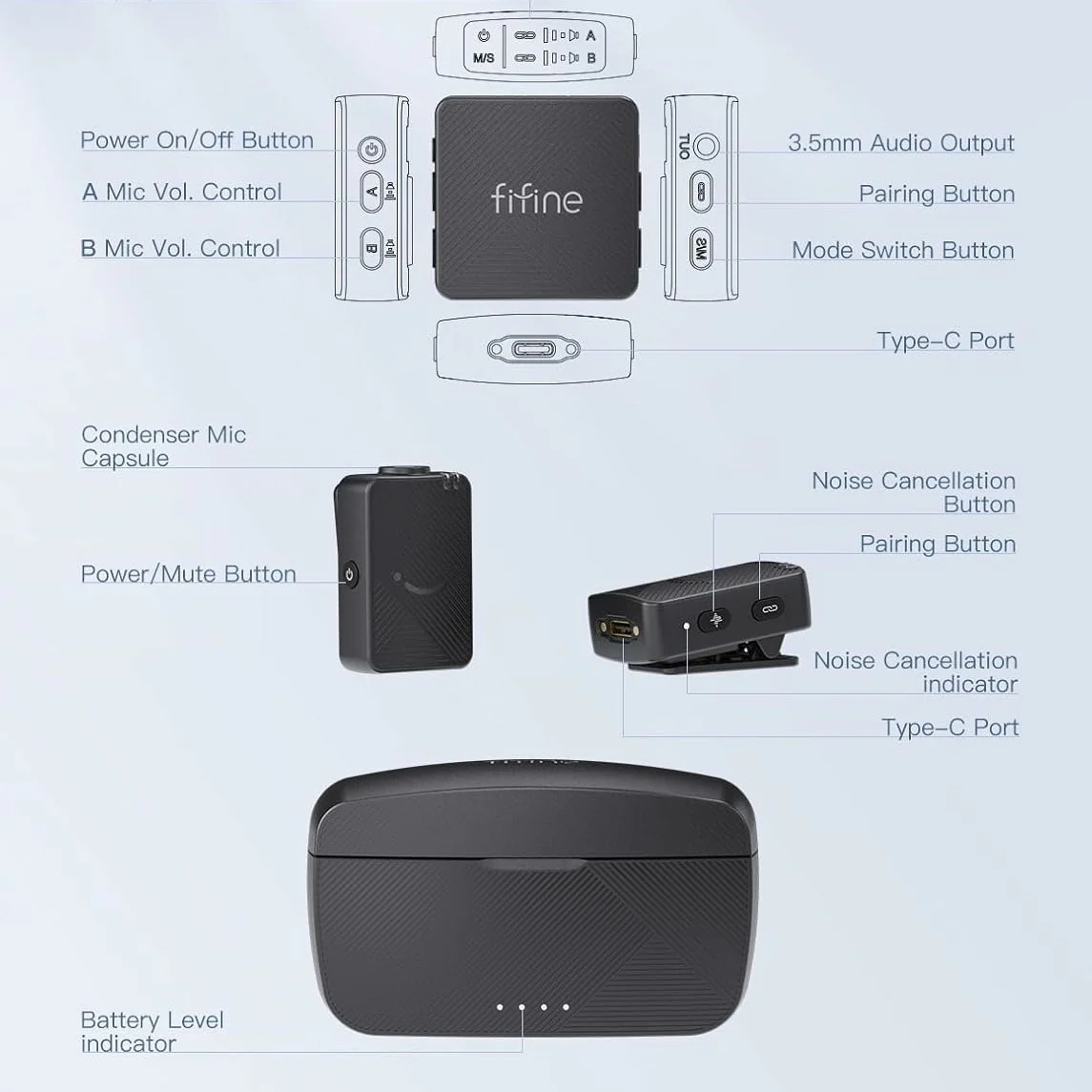 Fifine M9 Dual Wireless Mic With Charging Case ไมโครโฟนไร้สาย มาพร้อมเคสชาร์จในตัว