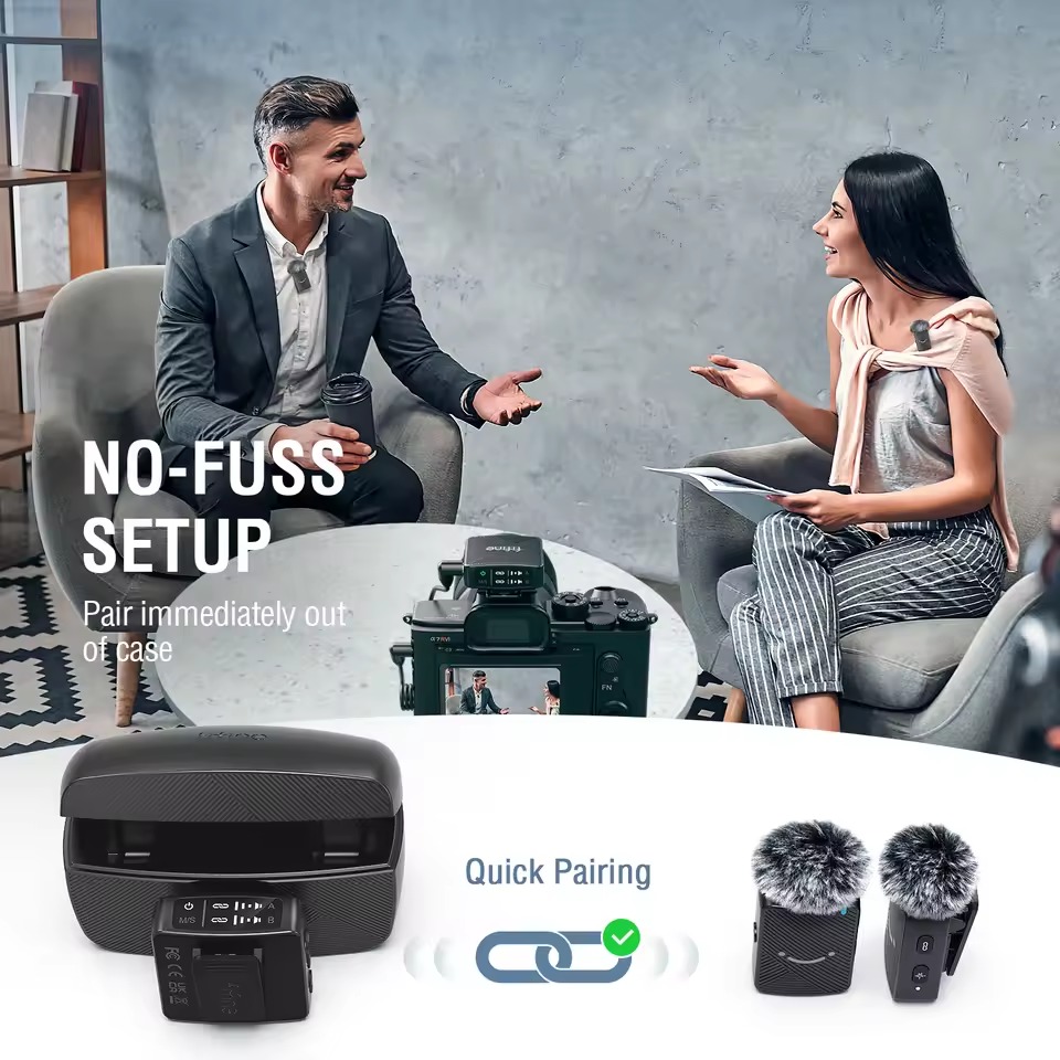 - - ไมโครโฟนไร้สายแบบคู่สำหรับการบันทึกเสียงพร้อมกัน 2 คน