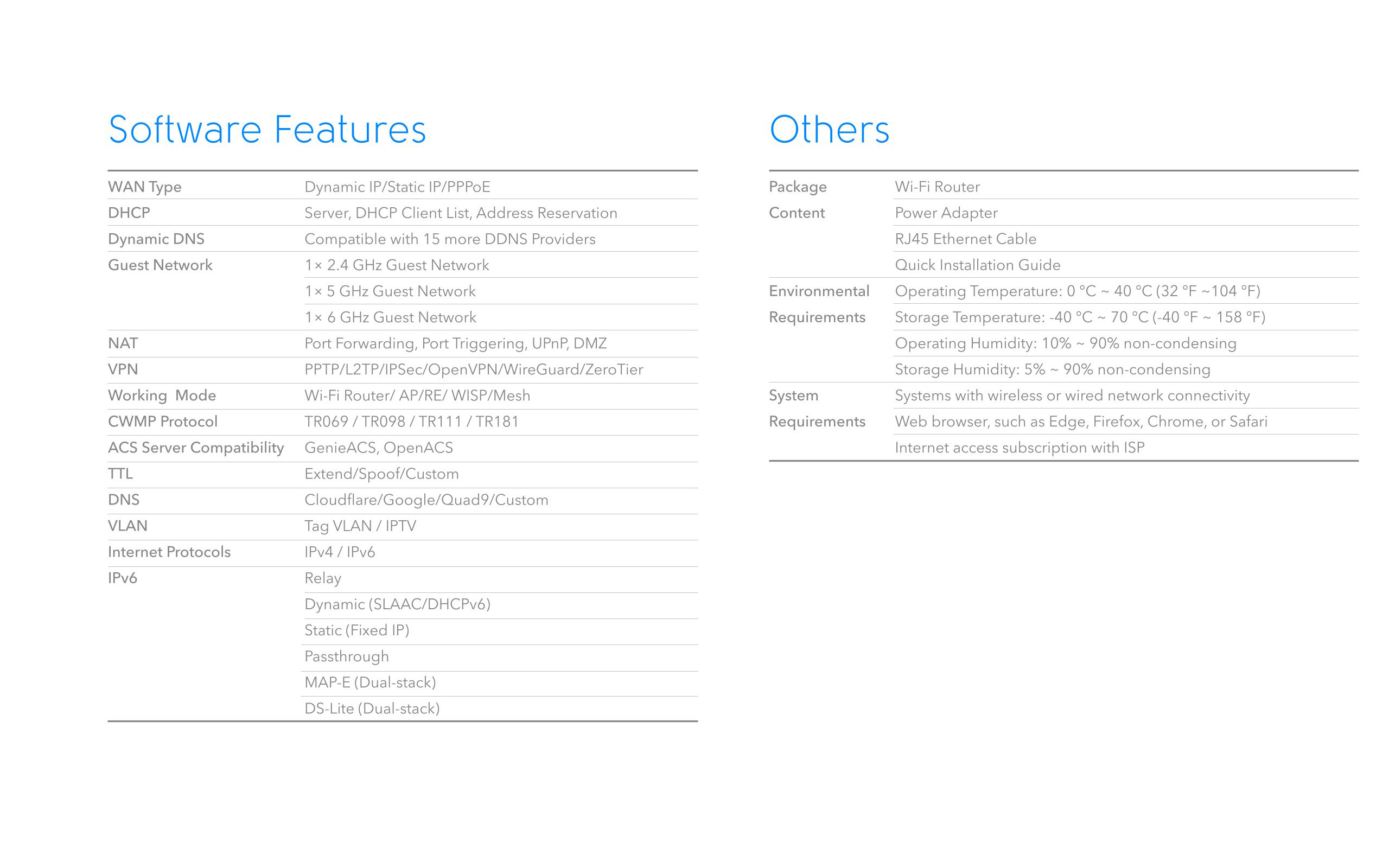 - - IPv4/IPv6, TR069/TR098/TR181/TR111