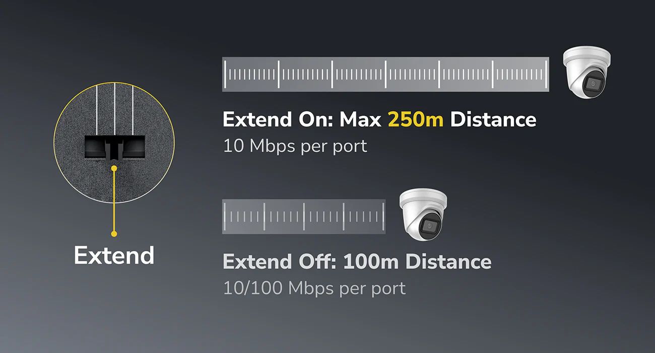 Copper Speed and Distance Note : 250-meter transmission is only available on the Extend Mode ports when the Extend Mode is activated.