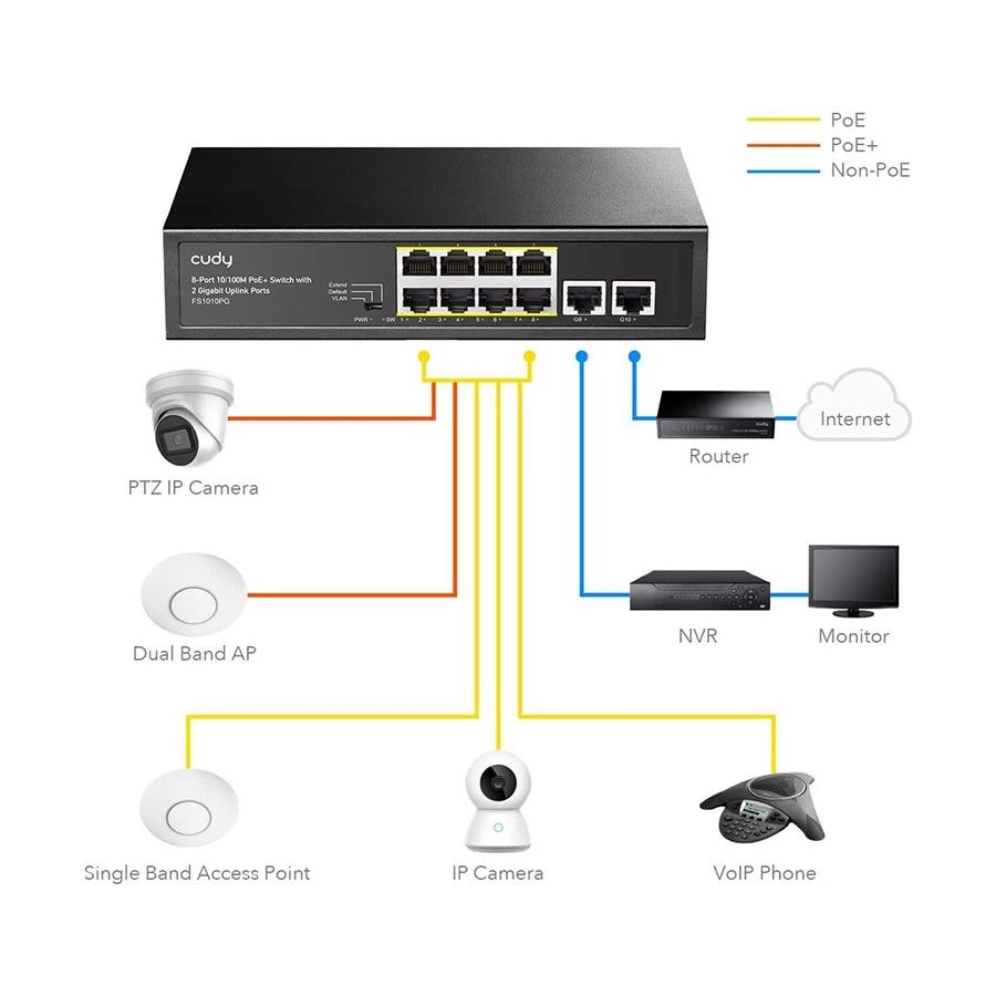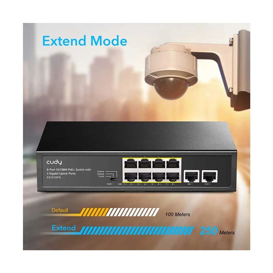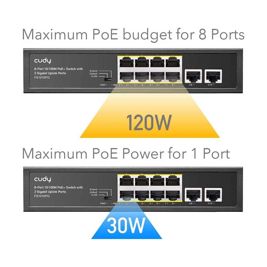 Cudy FS1010PG 8-Port 2 Uplink GbE 10/100 Mbps PoE+ Switch 120W สวิตช์ PoE