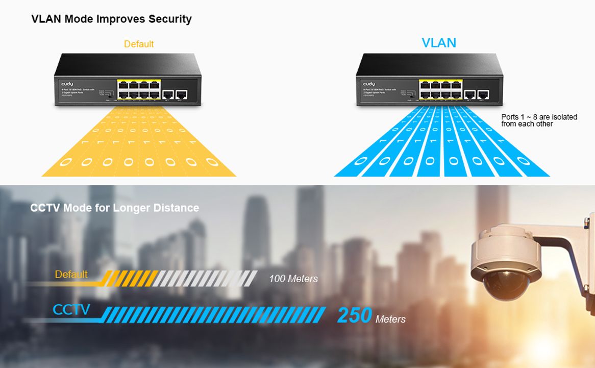 Copper Speed and Distance Note : Gigabit speed is only available on the uplink ports. 250-meter transmission is only available on the Extend Mode ports when the Extend Mode is activated.