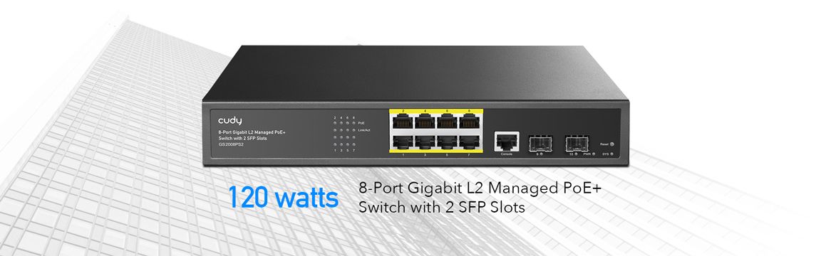 Cudy GS2008PS2 8-Port 2 SFP Slots Gigabit Managed PoE+ Switch สวิตช์ PoE