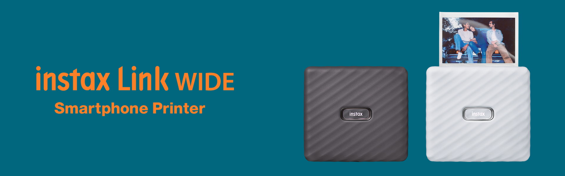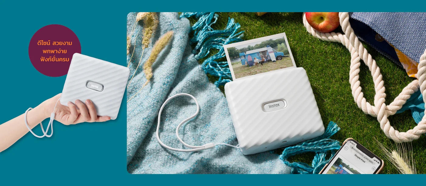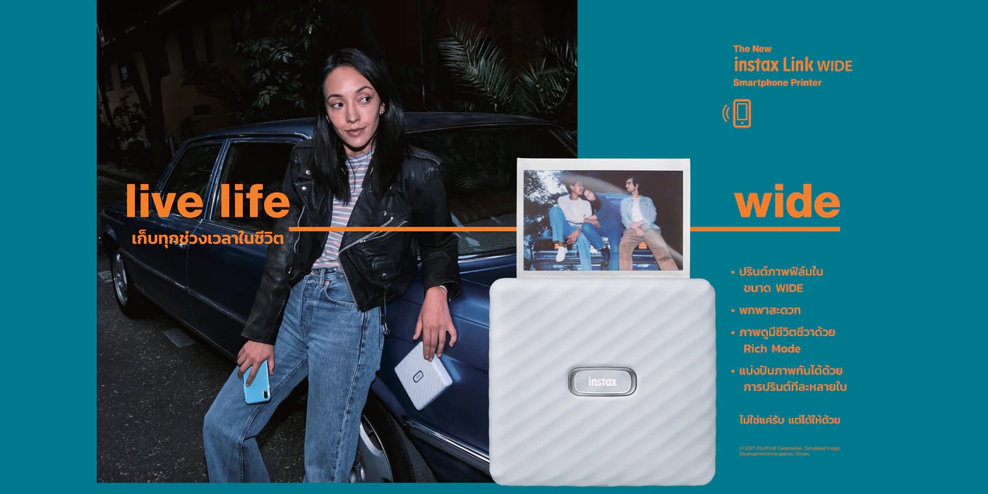 ปริ้นเตอร์ instax ขนาดฟิล์ม wide ภาพใหญ่ถึง 2 เท่า (เมื่อเทียบกับขนาดฟิล์ม mini) ปริ้นรูปฟิล์มจากมือถือผ่านบลูทูธ จะเลือกรูปถ่ายจากมือถือ หรือเลือกรูปช็อตจาก VDO เพื่อปริ้นฟิล์มก็ได้ สามารถบันทึกเสียงในรูปของ QR code แล้วปริ้นภาพฟิล์มได้ พร้อมฟิลเตอร์ กรอบรูป และลูกเล่นอื่นๆอีกมากมายให้คุณตกแต่งรูปฟิล์มได้อย่างสนุกสนานไม่ซ้ำใคร