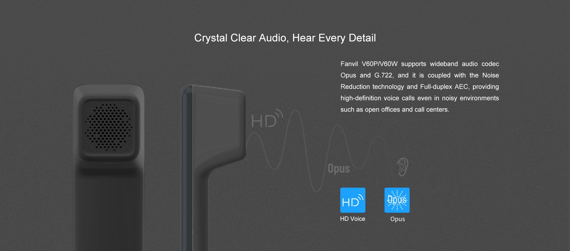 - - ฟีเจอร์เสียงครบ: AEC, NR, PLC, AGC, VAD, BNE, VQM