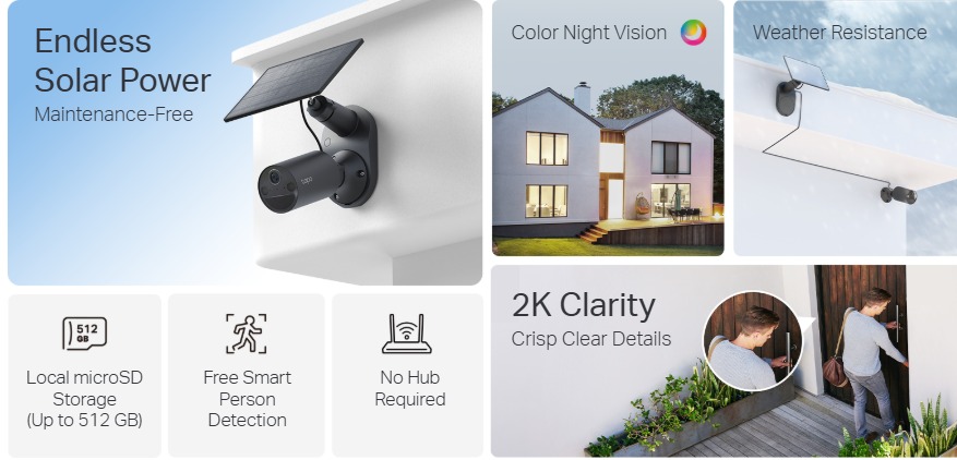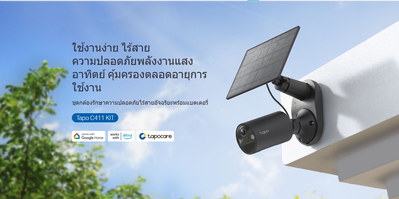 TP-Link Tapo C411 KIT กล้องวงจรปิดพลังงานแสงอาทิตย์ที่ตอบโจทย์การใช้งานภายนอก มาพร้อมแผงโซลาร์เซลล์ ใช้งานต่อเนื่องไร้สาย ติดตั้งง่ายได้ทุกที่ คมชัด 2K พร้อม Color Night Vision มองเห็นชัดกลางคืน แจ้งเตือนอัจฉริยะ ลดการเตือนผิดพลาด กันน้ำกันฝุ่นมาตรฐาน IP65 และบันทึกได้ทั้ง MicroSD และคลาวด์