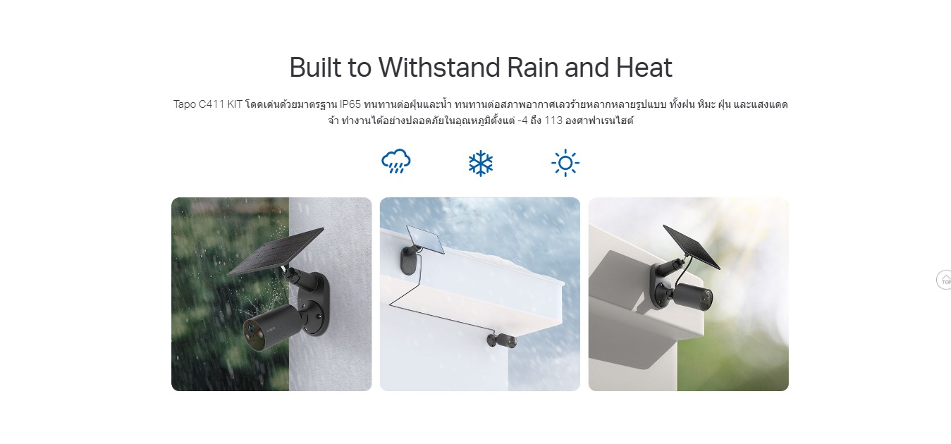 - - IP65 Weatherproof : ให้การกันน้ำกันฝุ่นที่มีประสิทธิภาพ รองรับการใช้งานภายนอกอาคารในทุกสภาวะอากาศ