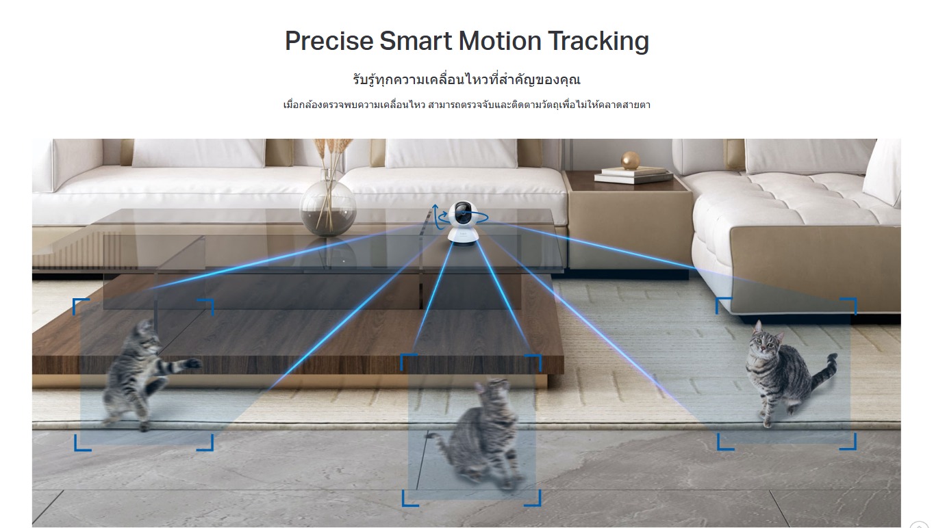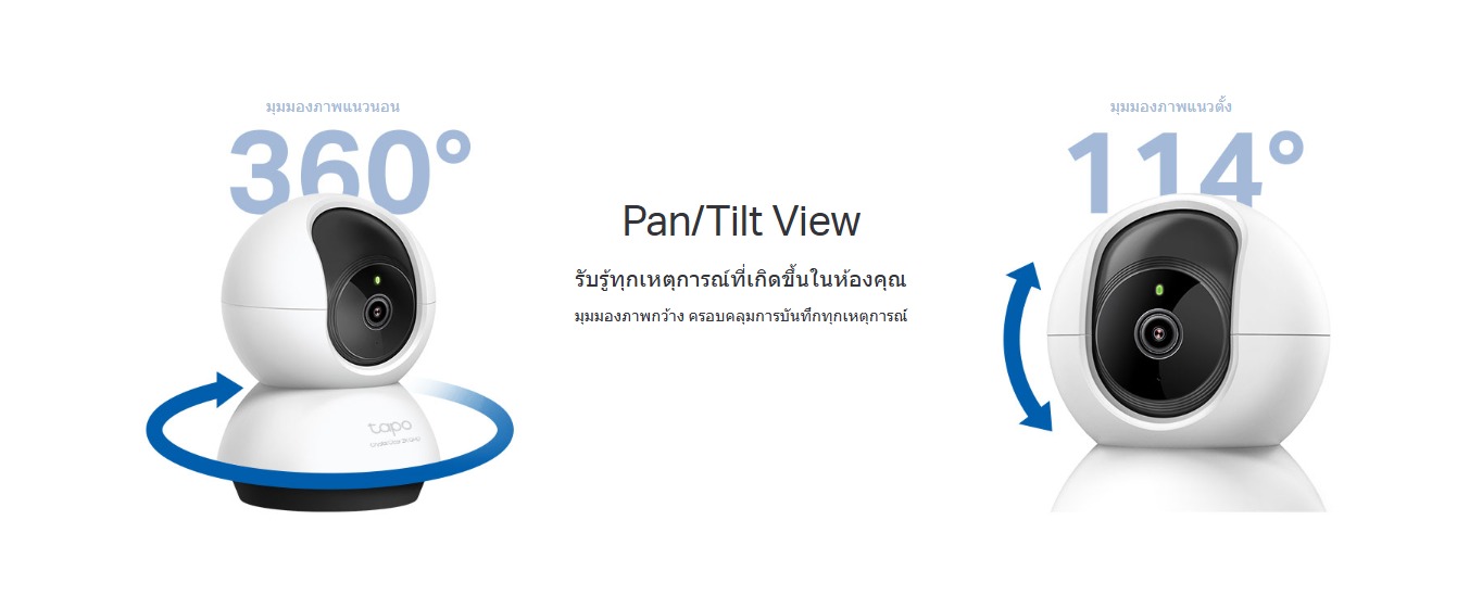 TP-Link IP Camera Tapo C220 เป็นกล้อง Indoor Security Wi-Fi Camera ที่มาพร้อมกับฟังก์ชั่น Smart AI สามารถปรับมุมมองหมุนกล้องได้ 360 องศา ในแนวนอน และ 114 องศา ในแนวตั้ง โดยบันทึกวิดีโอและภาพด้วยความละเอียดคมชัด 2K 4MP และรองรับ micro SD Card ได้สูงสุดถึง 512 GB Smart AI Detection and Notifications