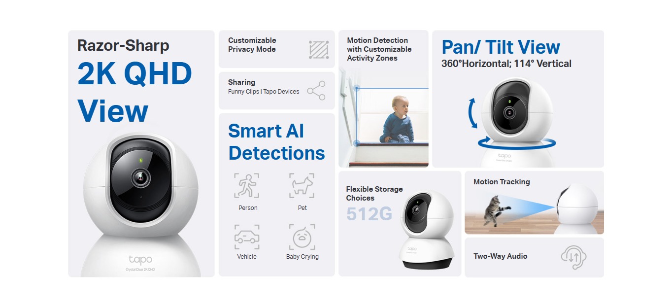 TP-Link Tapo C220 2K Pan/Tilt AI Home Security wi-Fi Camera มี Smart AI แยกได้ทั้งคน สัตว์ พาหนะ