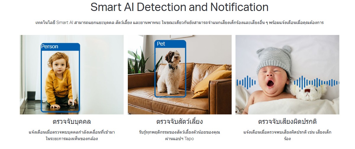 - - Smart AI ให้คุณตรวจจับเหตุการณ์และแจ้งเตือนให้คุณไม่พลาดทุกความเคลื่อนไหว